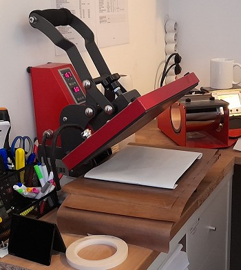 L’opération est délicate et nécessite précision et précautions du fait de la température dégagée. Gants isolants obligatoires pour la manipulation ! Une fois la température atteinte (180°) et la presse refermée, en à peine 2 minutes, le miracle a lieu : Linutil se retrouve « sublimé » !